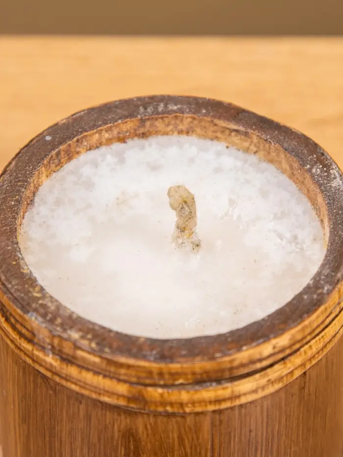 Свеча в бамбуке, 7х7х6 см, 100 мл, цв. бежевый