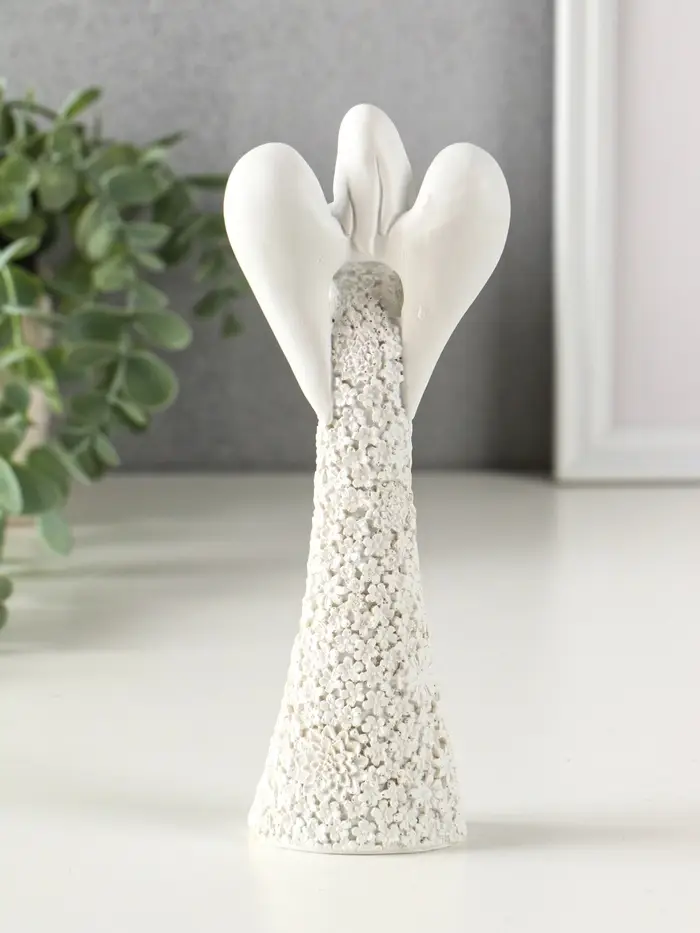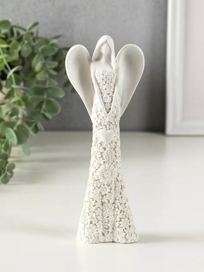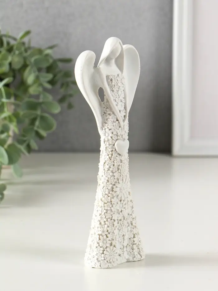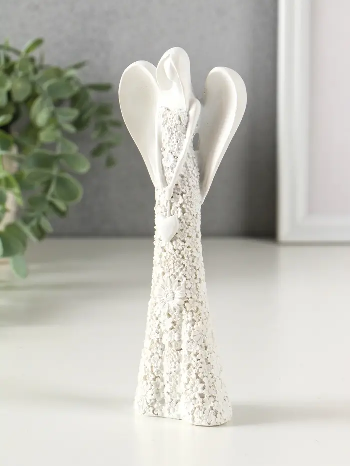 Сувенир полистоун "Безликий ангел в цветочном белом платье с сердцем" МИКС 20 см