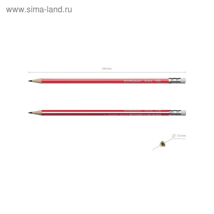 Карандаш чернографитный Extra HB, ErichKrause, с ластиком, трёхгранный