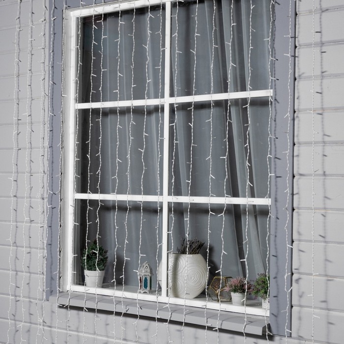Гирлянда «Занавес» 2 × 6 м, IP44, УМС, белая нить, 1440 LED, свечение белое, мерцание, 220 В