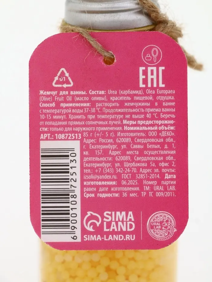 Жемчуг для ванны во флаконе, 85 гр, аромат ванильный пряник, URAL LAB