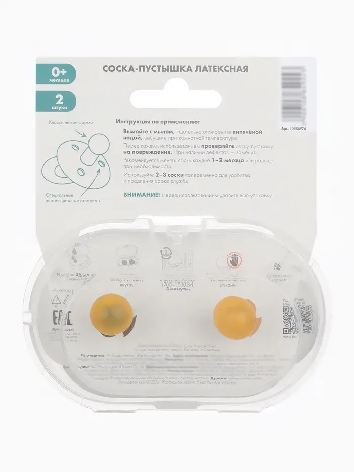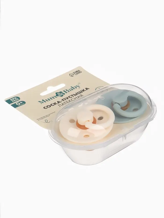 Набор классических пустышек, 2 шт., латекс, цв.айвори/зеленый, в контейнере, от 0 +., M&B