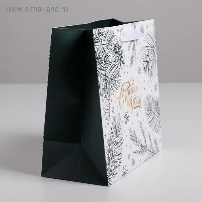 Пакет подарочный ламинированный квадратный «Еловые шишки», 22×22×11 см
