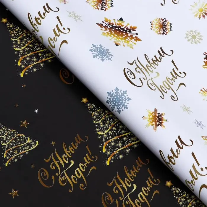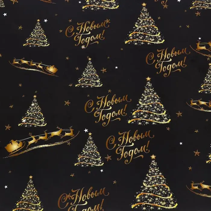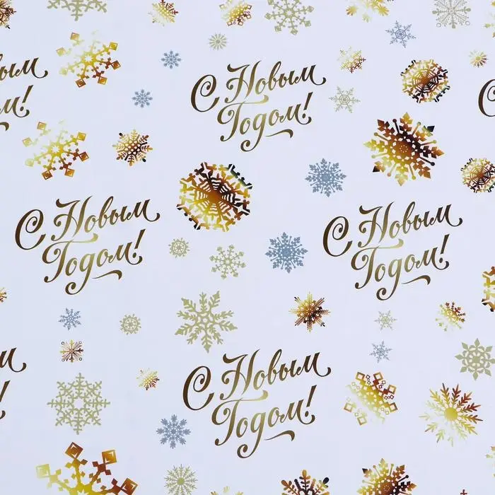 Бумага упаковочная глянцевая, двусторонняя «С Новым годом»,золотой, 50×70 см