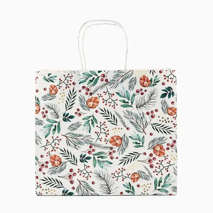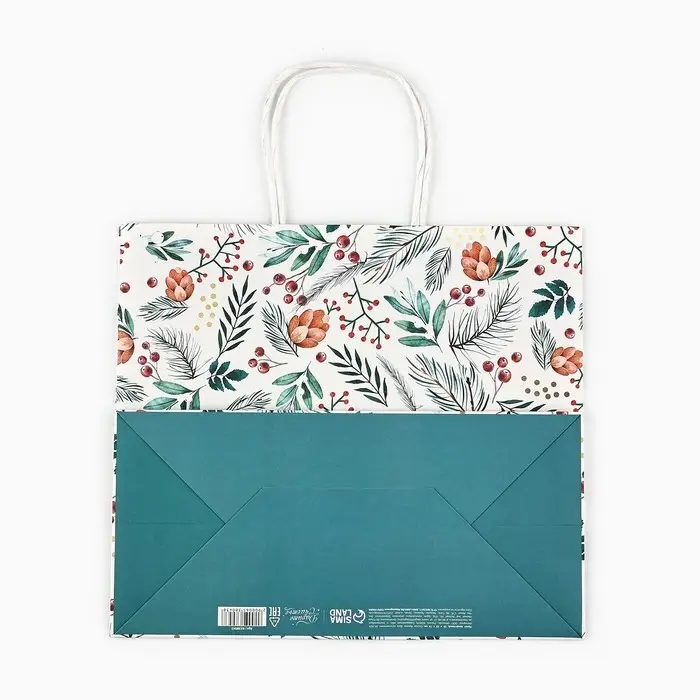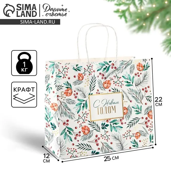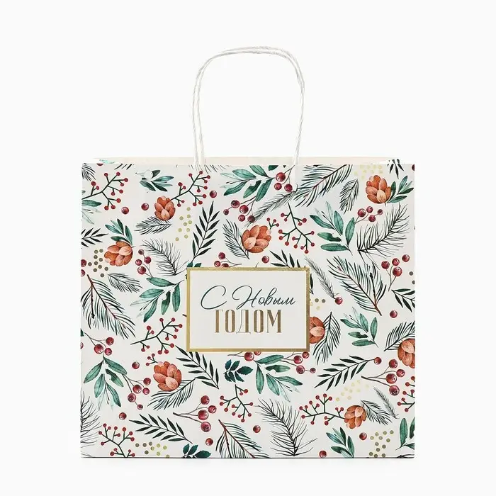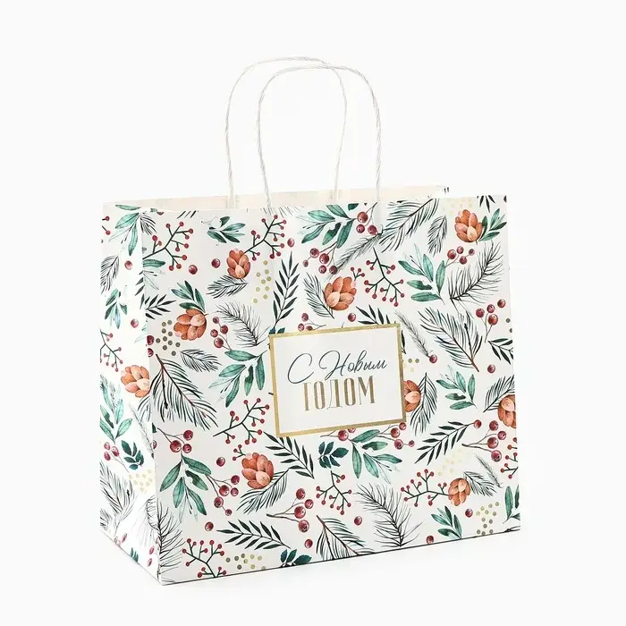Пакет подарочный новогодний крафтовый «На лесной опушке», 25 х 22 х 12 см