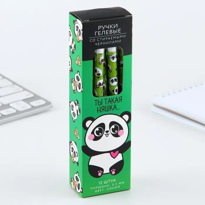 Ручка пиши стирай синяя паста 0,5 мм с колпачком «Панда»