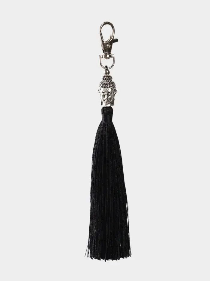 Брелок-кисточка "Будда" 17 см, цв. чёрный, серебристый