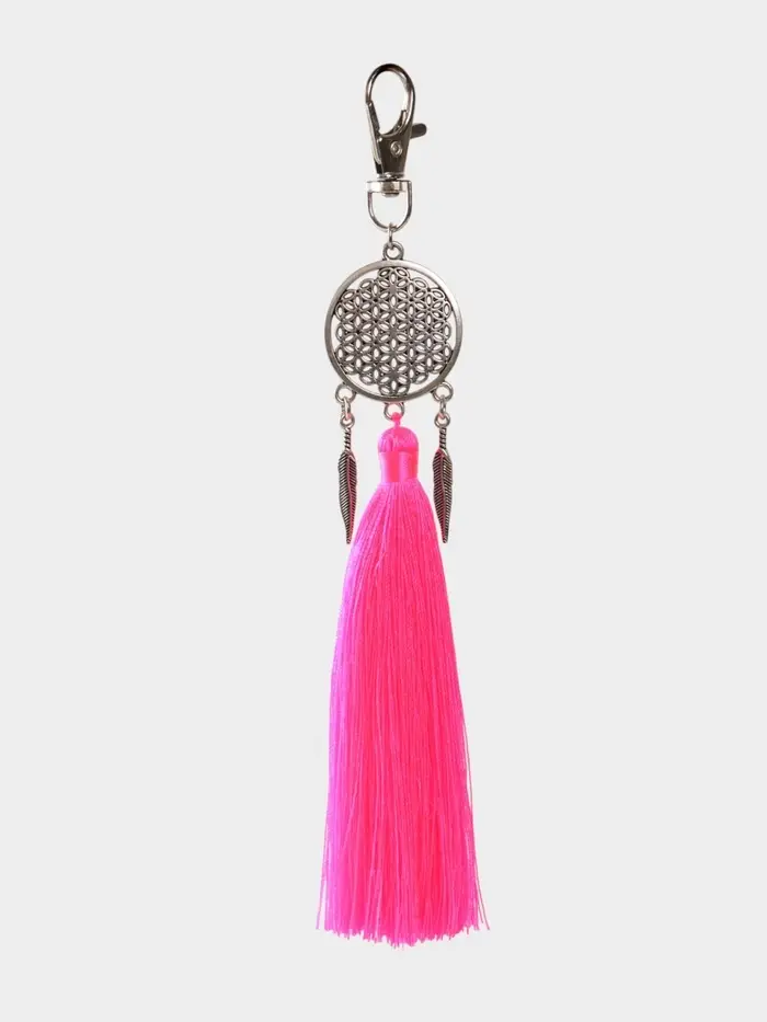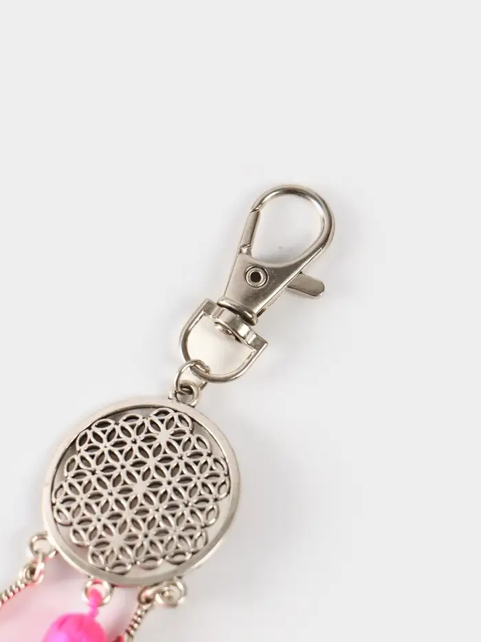 Брелок-кисточка "Ловец снов" 17 см, цв. розовый, серебристый