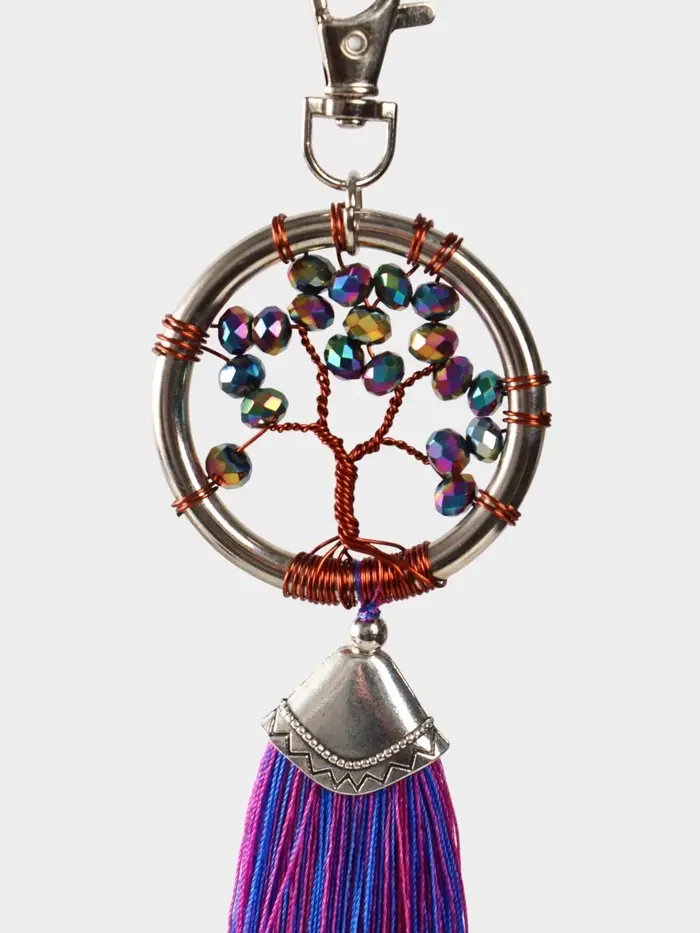 Брелок ловец снов "Древо жизни" 19 см, цв. фуксия, перламутр