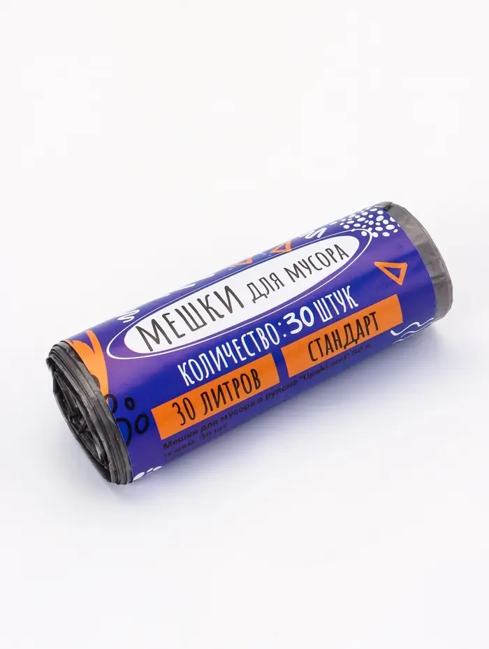 Мешки для мусора 30 л, ПНД, 15 мкм, 30 шт в рул, цвет черный