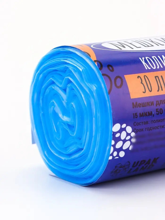 Мешки для мусора в рулоне 30 л, синие, ПНД, толщина 15 мкм, 50 шт