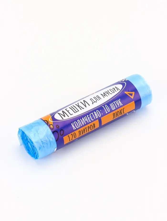 Мешки для мусора 120 л ПНД,толщина 10 мкм, 10 шт в рулоне, цвет синий