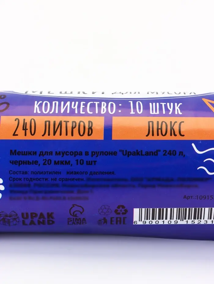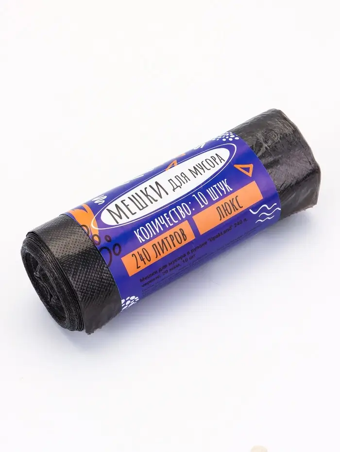 Мешки для мусора 240 л, ПНД, 20 мкм, 10 шт в рул, цвет черный