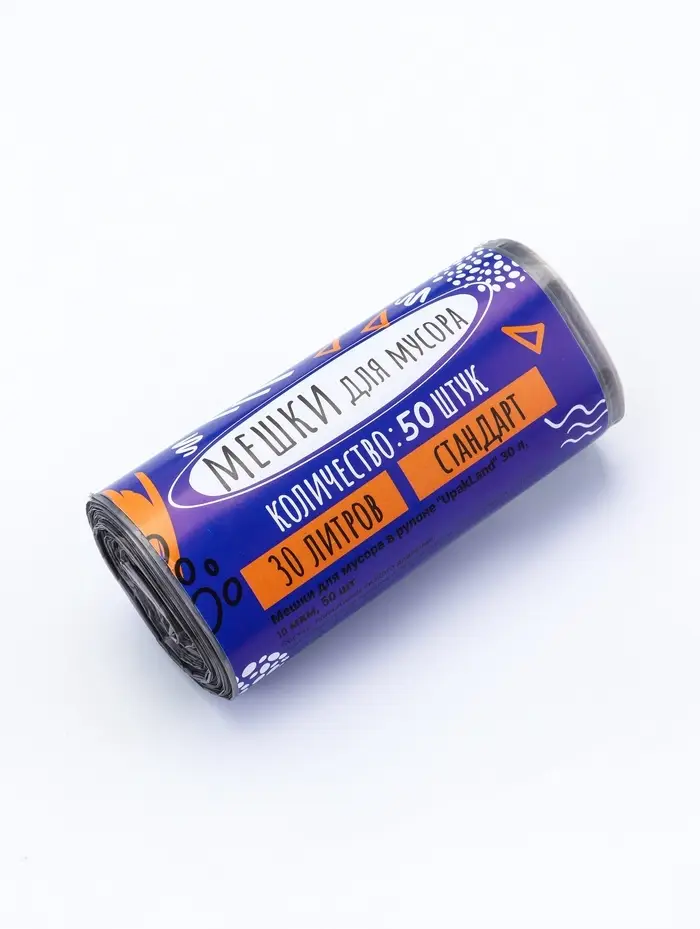 Мешки для мусора в рулоне 30 л,черные, ПНД,толщина 10 мкм, 50 шт