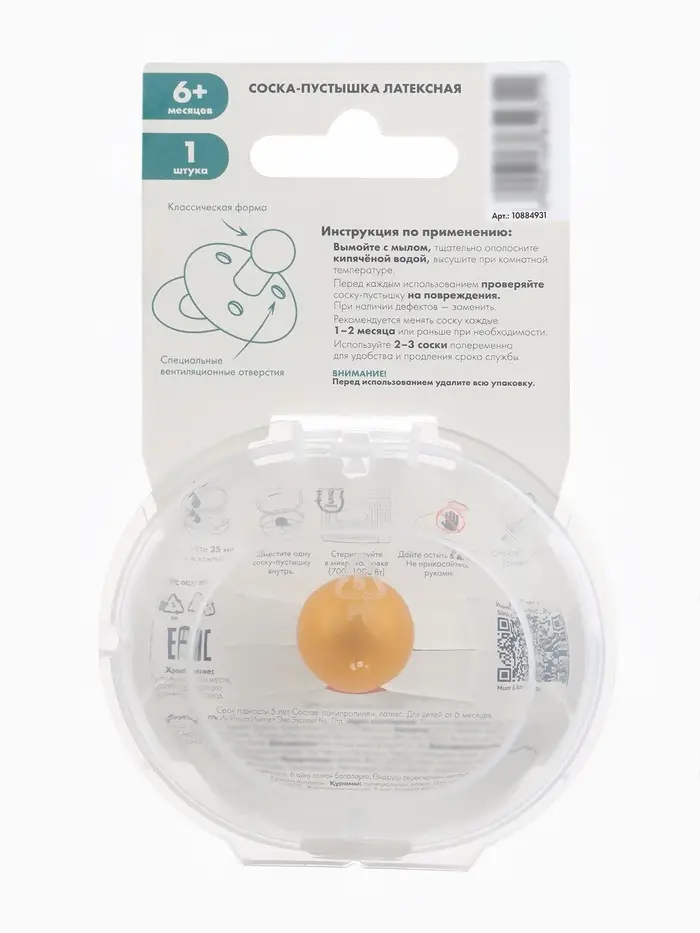 Соска - пустышка классическая, латекс, цв.айвори, в контейнере, от 0 мес., M&B