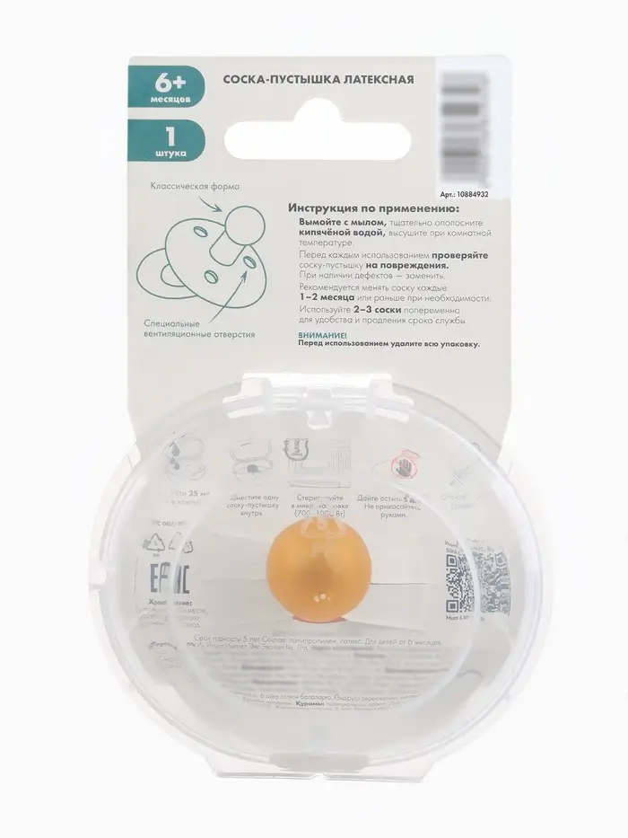 Соска - пустышка классическая, латекс, цв.пыльно-розовый, в контейнере, от 0 мес., M&B