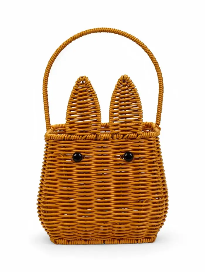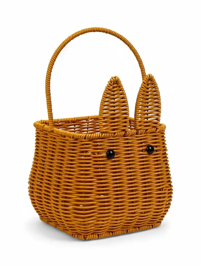 Корзина пластик 17 х 17 х 17 см, ручка16 см металл каркас Заяц, коричневый