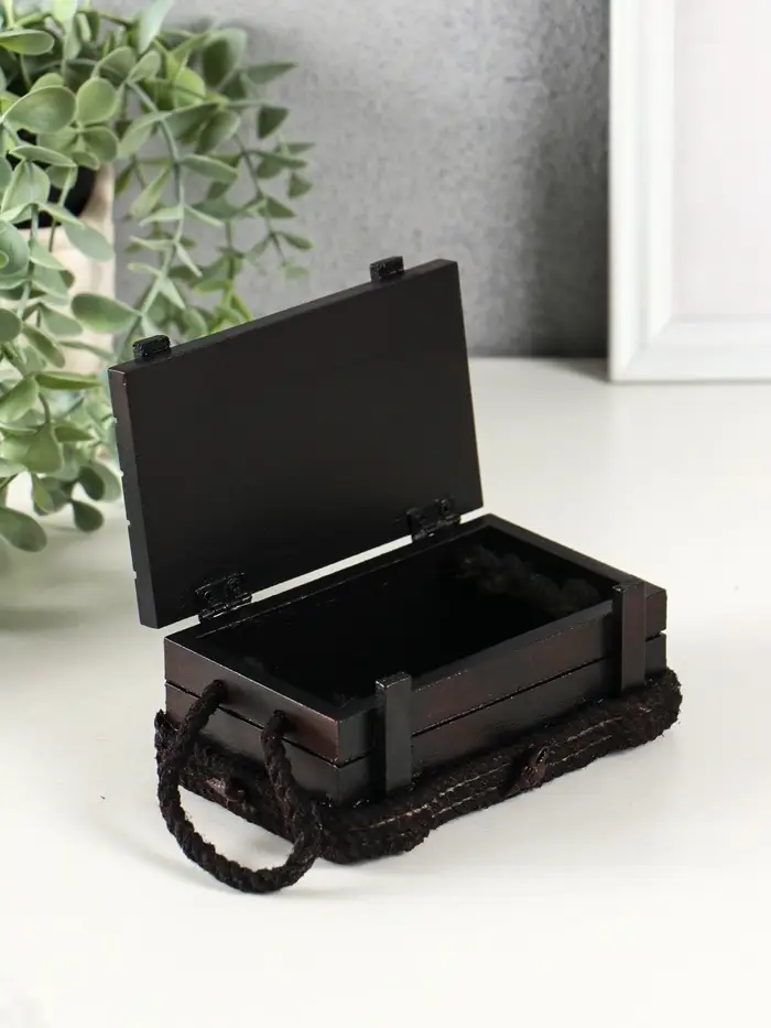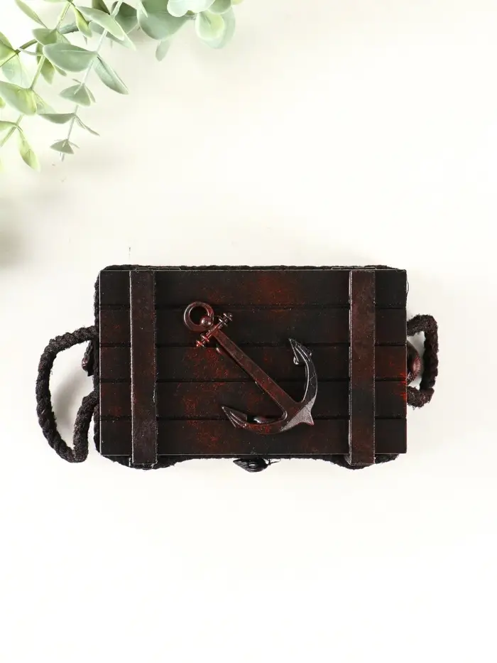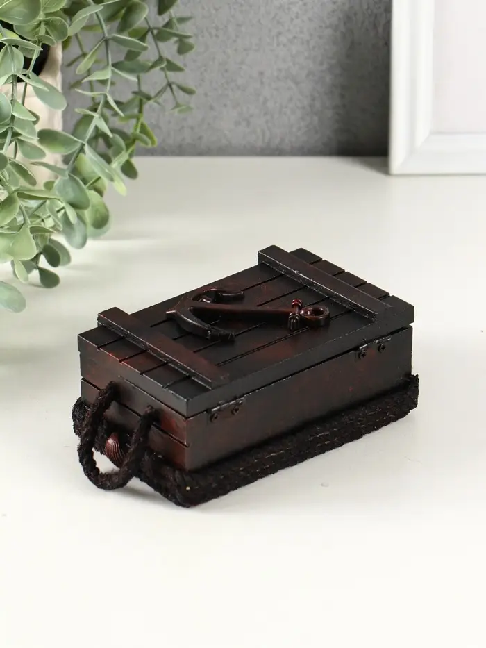 Шкатулка дерево "Морской сундук с якорем" красно-коричневая 12,8х8х5,5 см