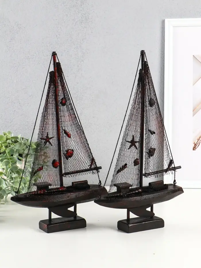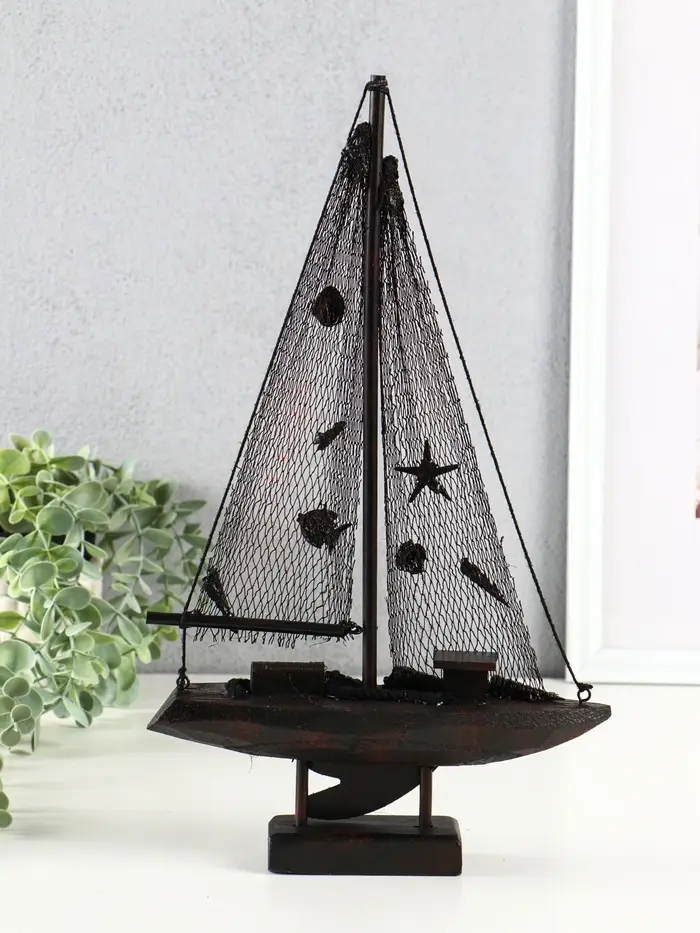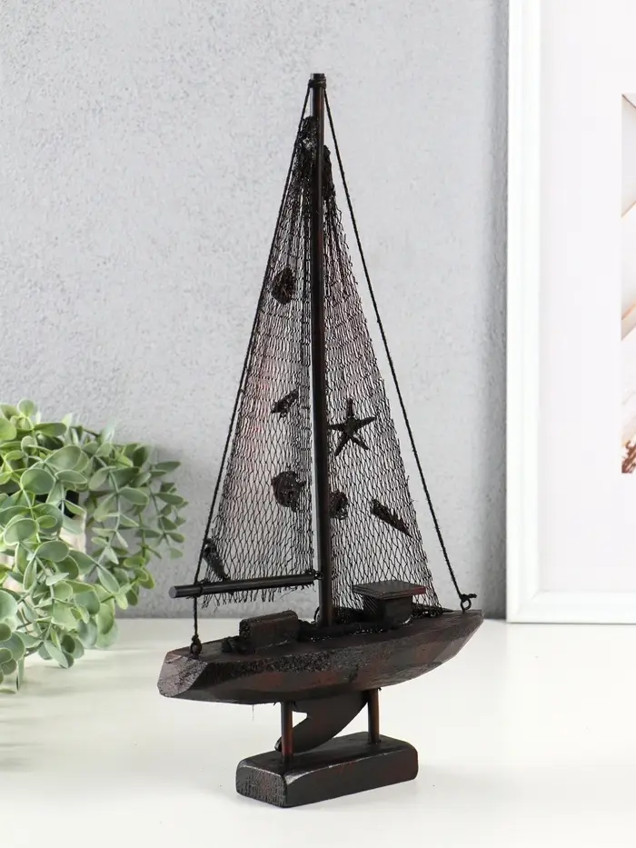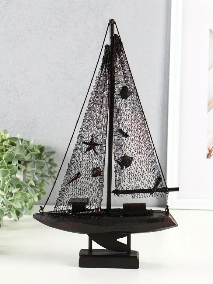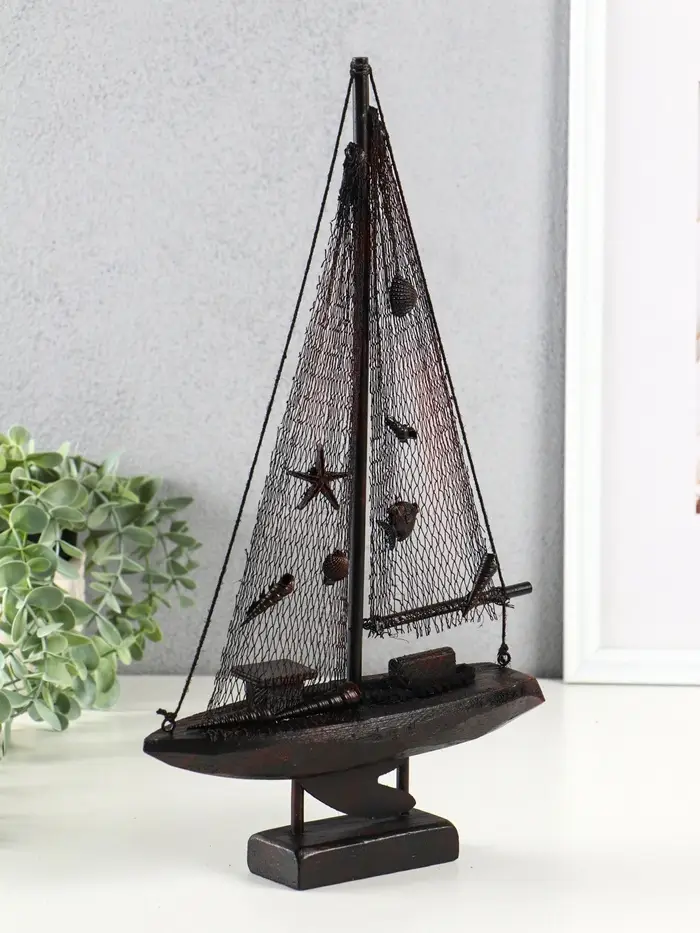 Корабль сувенирный на подставке "Парусник рыбацкий" красно-коричневый 21,5х6,5х37,5 см