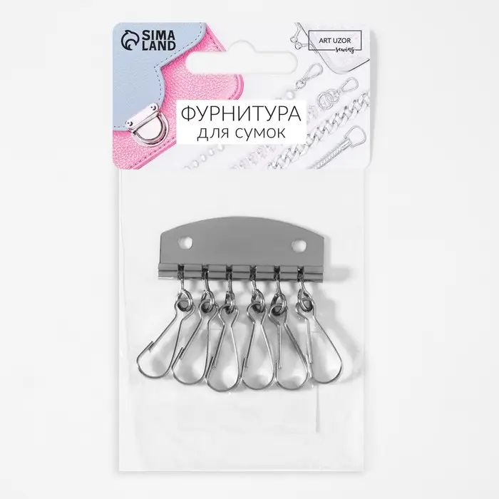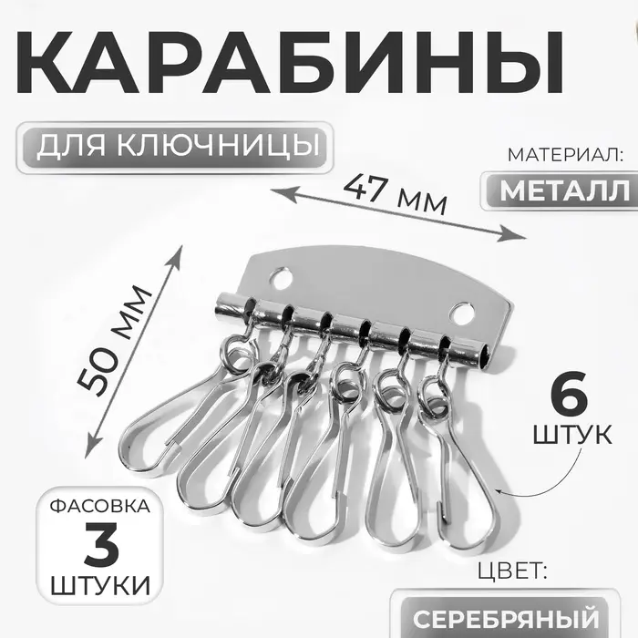 Карабины для ключницы, 6 шт., 47×50 мм, цвет серебряный