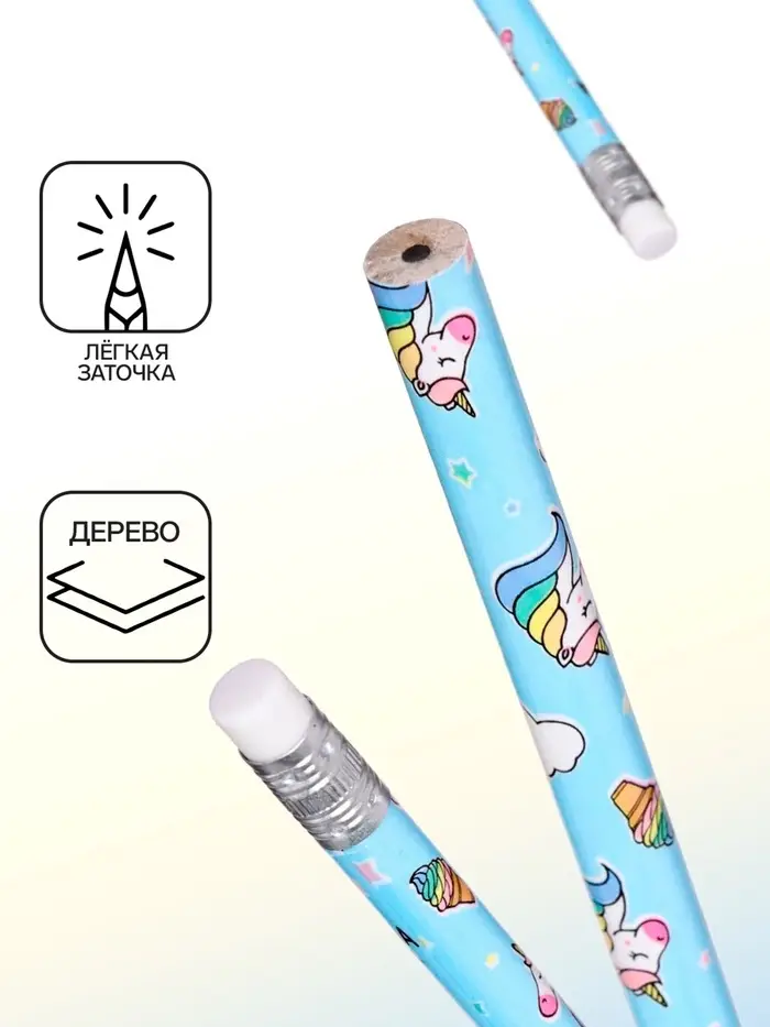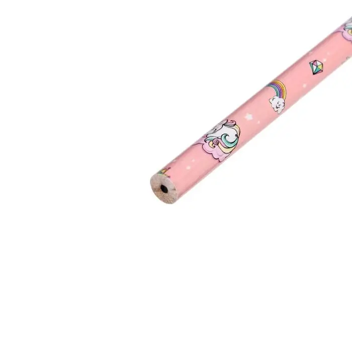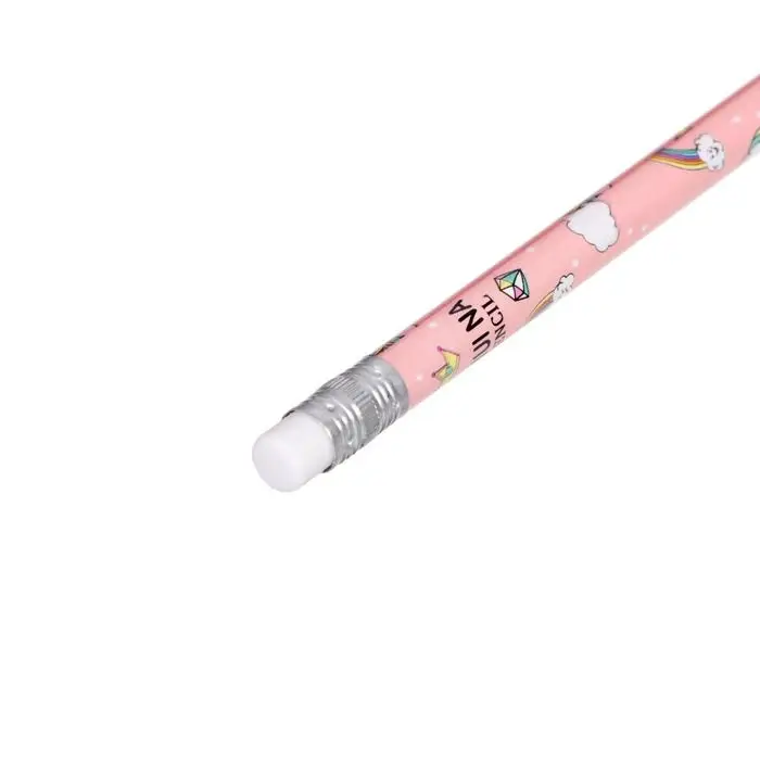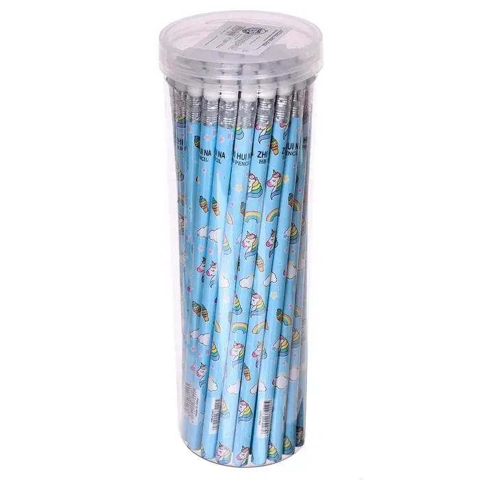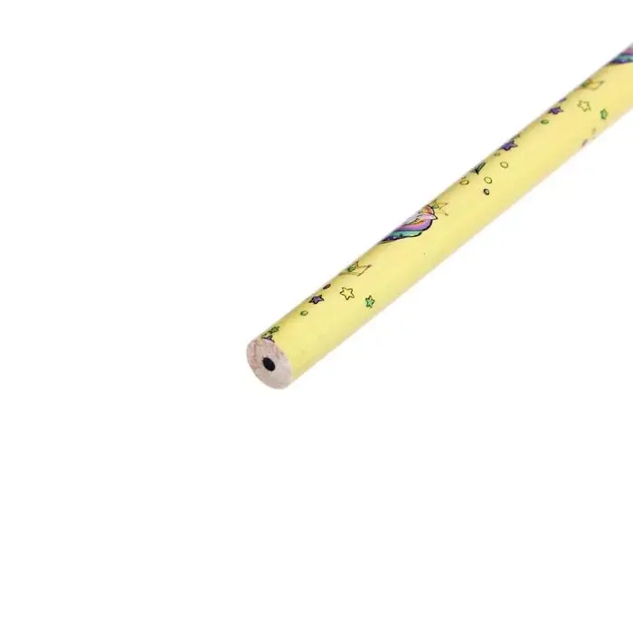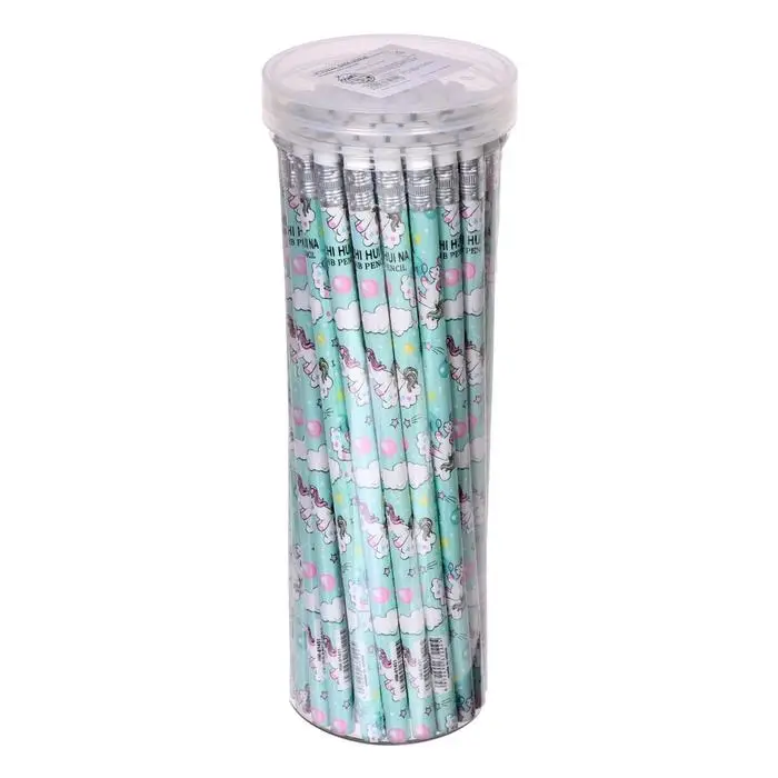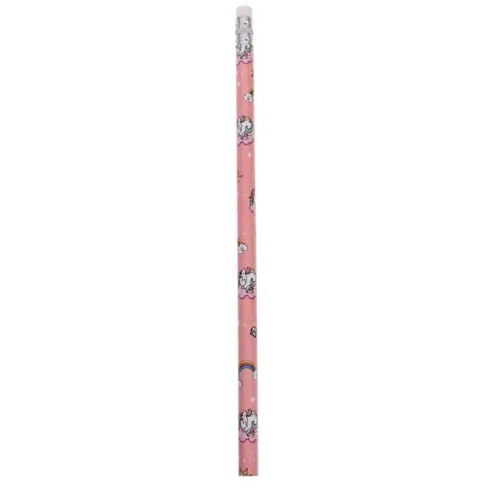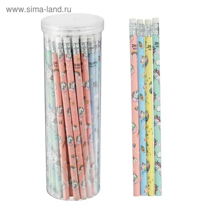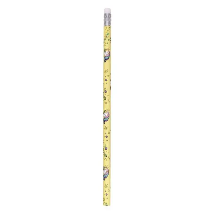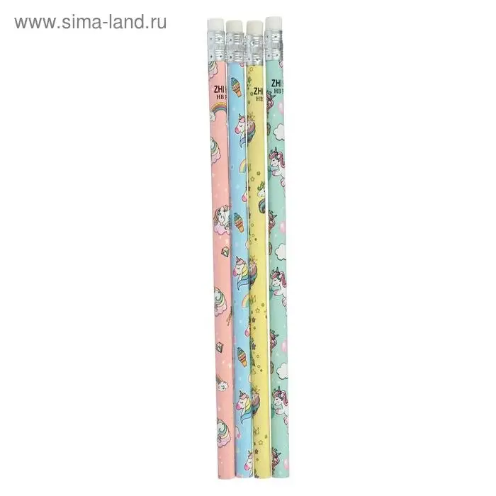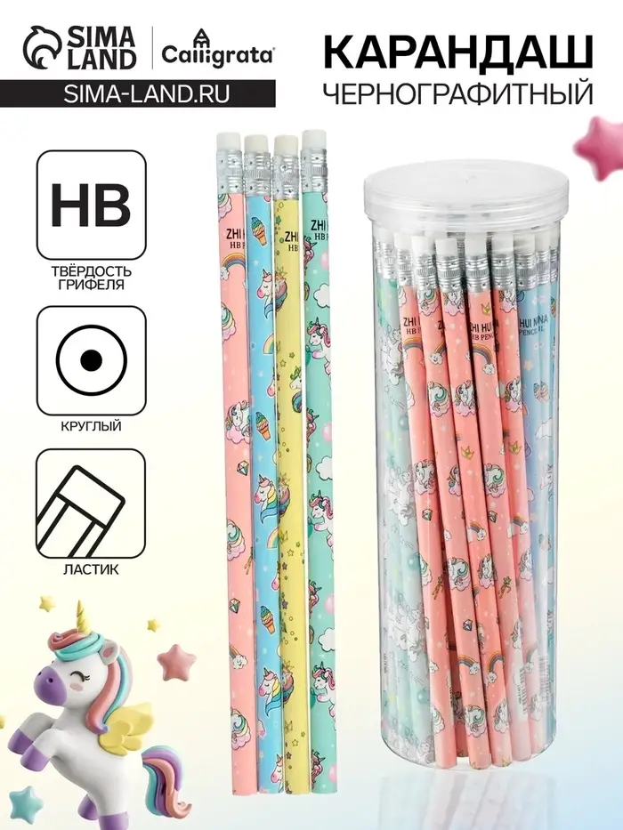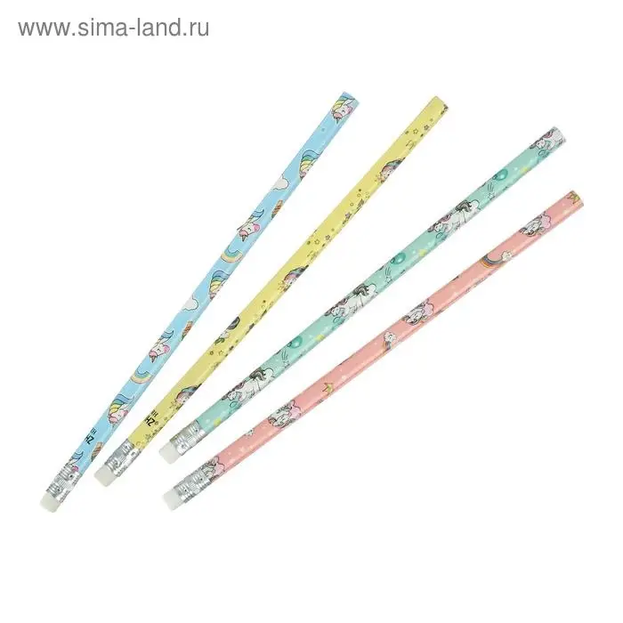 Карандаш чернографитный с ластиком «Единороги», твердость НВ, корпус круглый, МИКС (штрихкод на штуке)