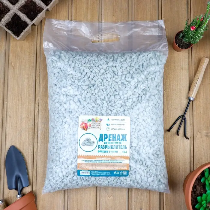 - Воздухопроницаемость. Структура пеностекла обеспечивает хорошую воздухопроницаемость, что способствует улучшению корневой системы растений и предотвращает загнивание корней.