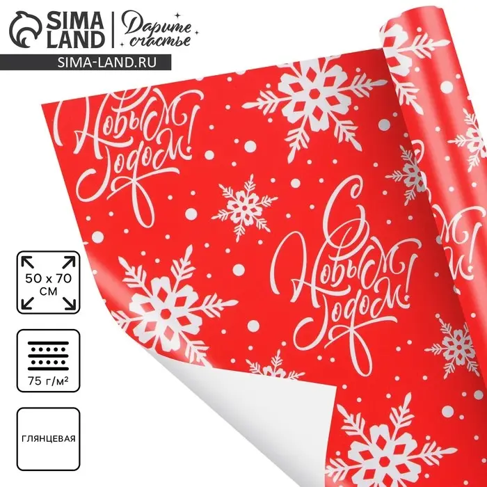 Упаковочная бумага на новый год «С Новым Годом !», 50 х 70 см, глянцевая