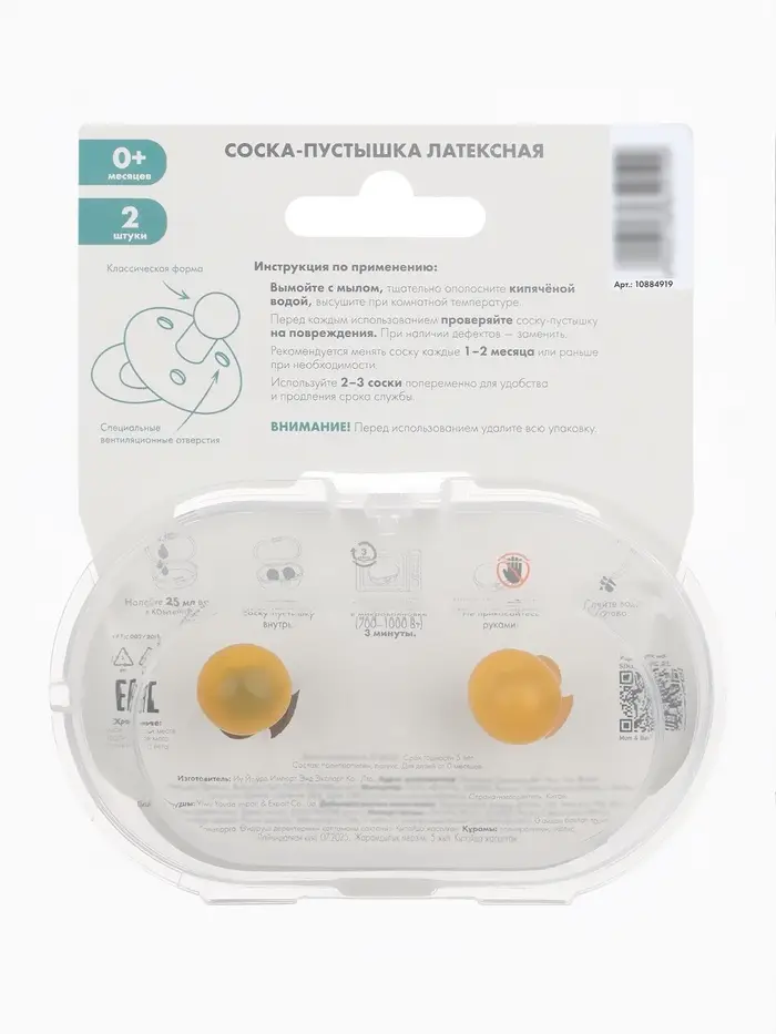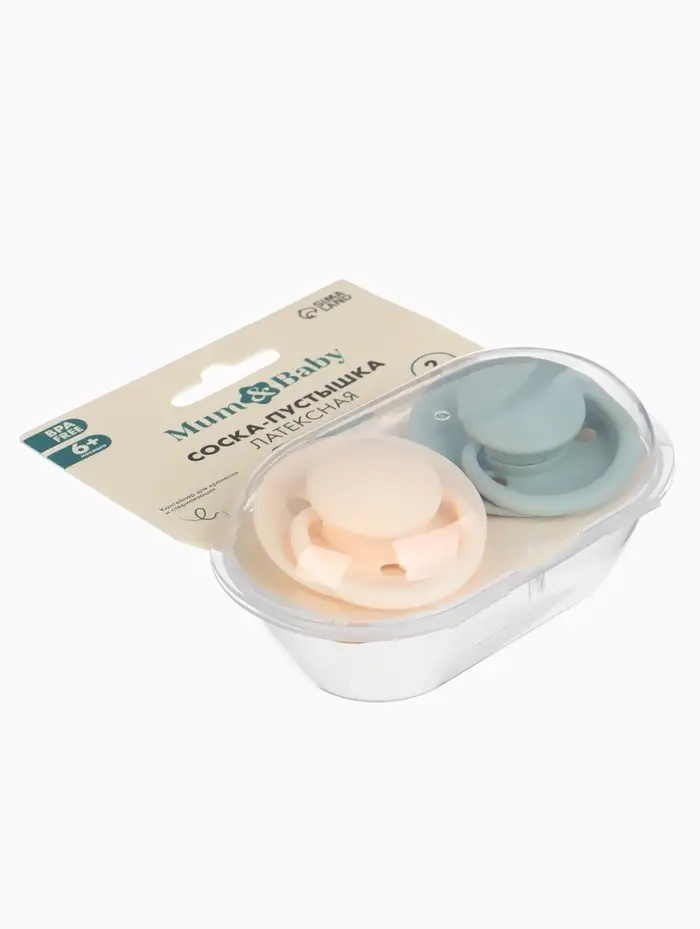 Набор классических пустышек, 2 шт., латекс, айвори/зелёный, в контейнере, от 6 мес., M&B