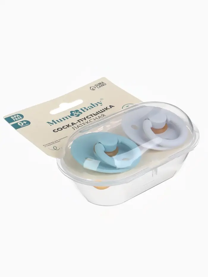 Набор классических пустышек, 2 шт., латекс, серо-синий/серый, в контейнере, от 0 мес., M&B 1088492