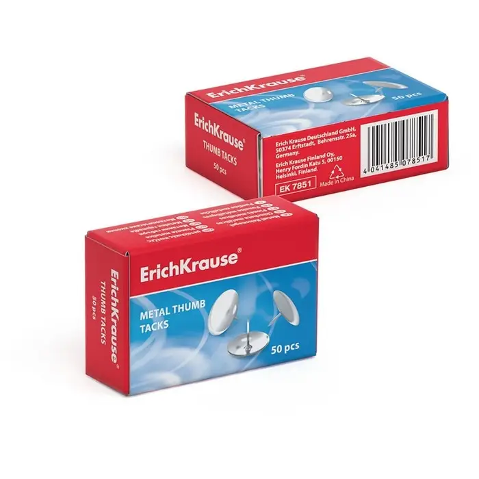 Кнопки канцелярские ErichKrause, никелированные 12 мм, 50 штук