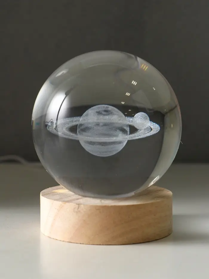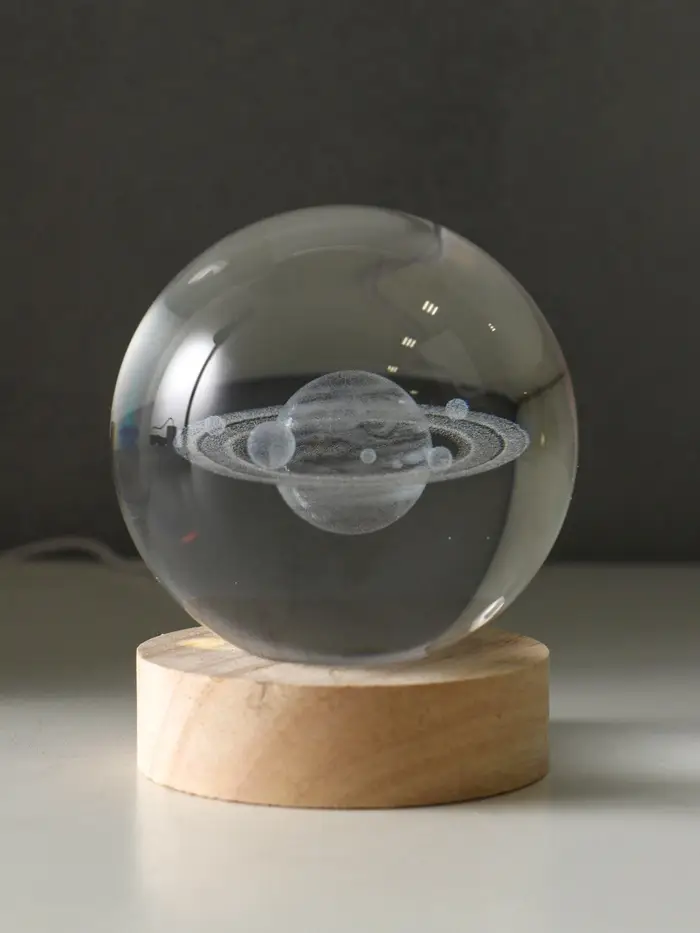 Сувенир стекло подсветка "Солнечная система" d=8 см подставка дерево, USB 8х8х9,5 см