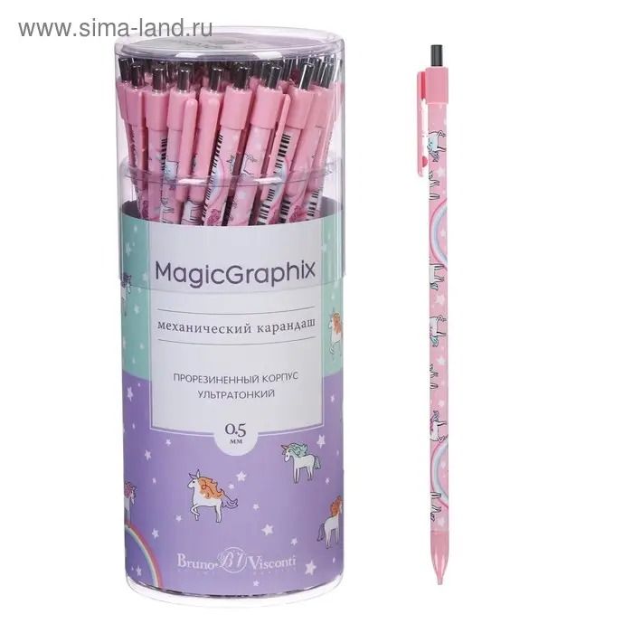 Карандаш механический 0,5 мм MagicGraphix «Единороги», НВ, пластиковый корпус