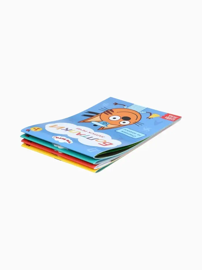 Набор книг «Запуск речи» Три кота — это увлекательный инструмент для развития речи малышей от 1 года. Четыре книжки по 36 страниц каждая, созданные по мотивам популярного мультсериала, помогут ребёнку легко и весело освоить новые слова и выражения.