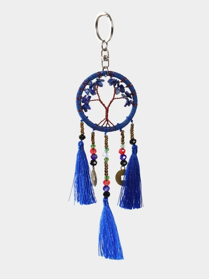 Брелок ловец снов "Древо" 19 см, цв. синий