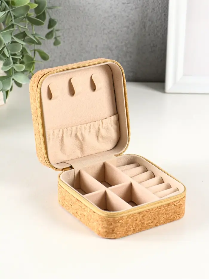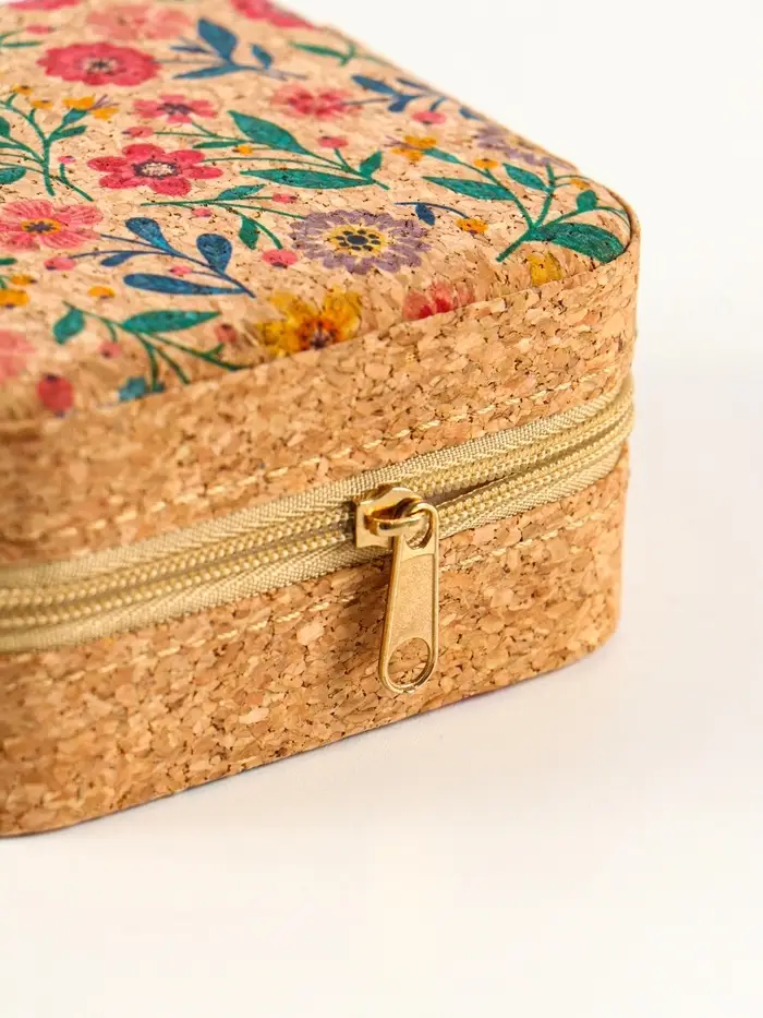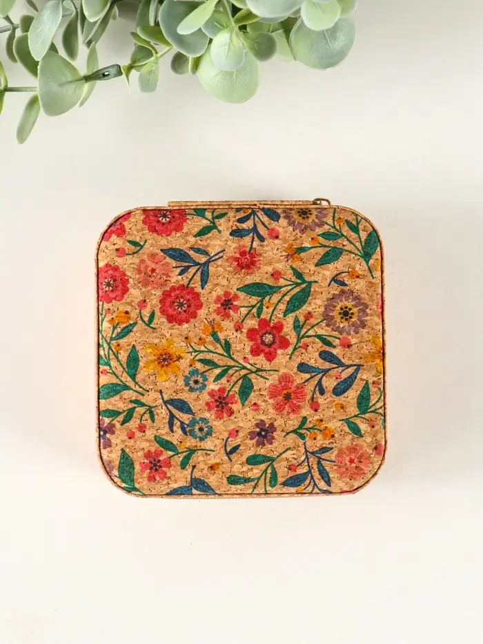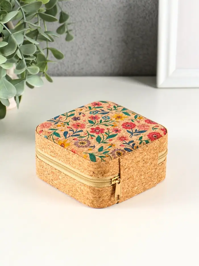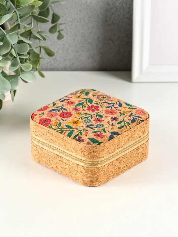 Шкатулка кожзам для украшений "Цветочная" пробка 10х10х5 см