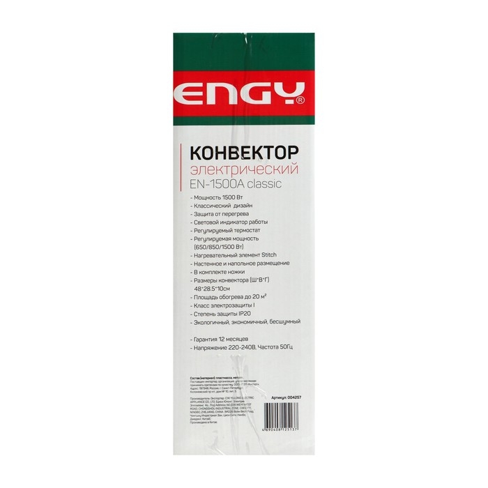Обогреватель ENGY EN-1500A classic, конвекторный, 1500 Вт, 20 м², белый