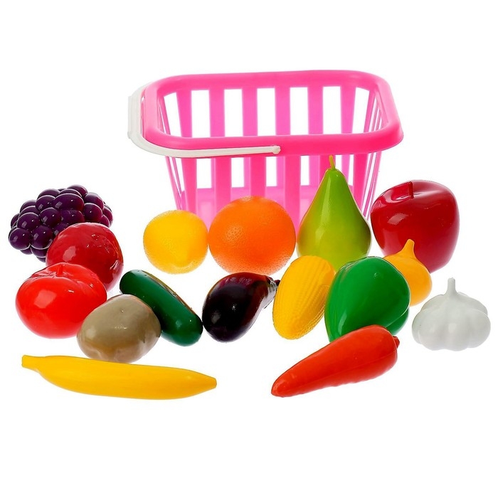 Набор «Фрукты и овощи» в корзине, 17 предметов, цвета МИКС