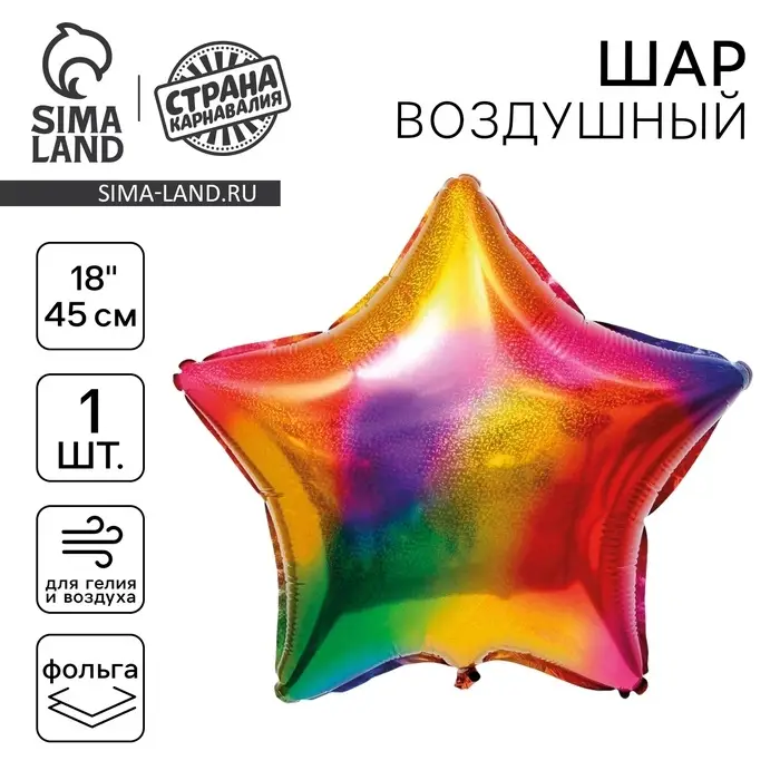 Воздушный шар фольгированный 18" «Звезда», разноцветный