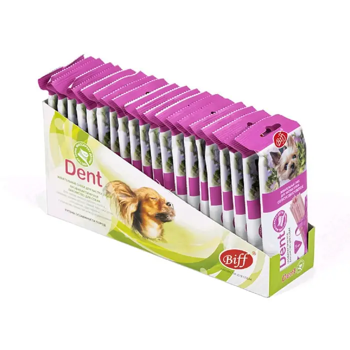 Biff DENT жевательные снеки - это профилактическое лакомство для собак, которое благодаря специально разработанной форме и текстуре, учитывает все особенности мелких пород. Рекомендованы для снятия мягкого зубного налета.