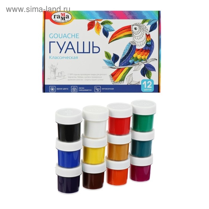 Гуашь 12 цветов "Гамма" "Классическая", 20 мл