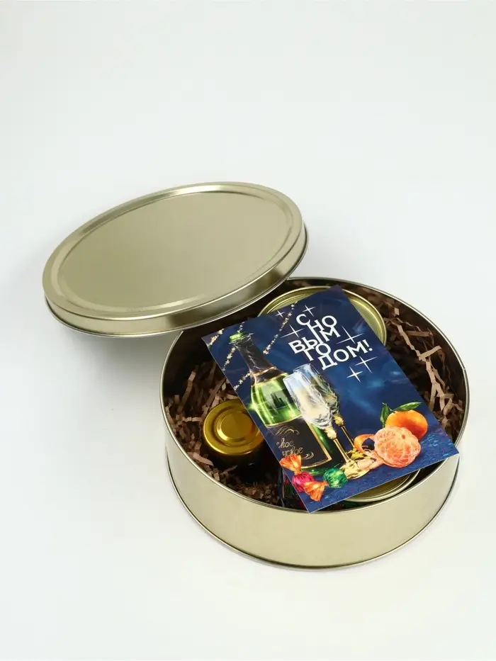 Подарочный набор в железной банке чай, монпансье, варенье, открытка «С Новым годом, Кремль» 108948