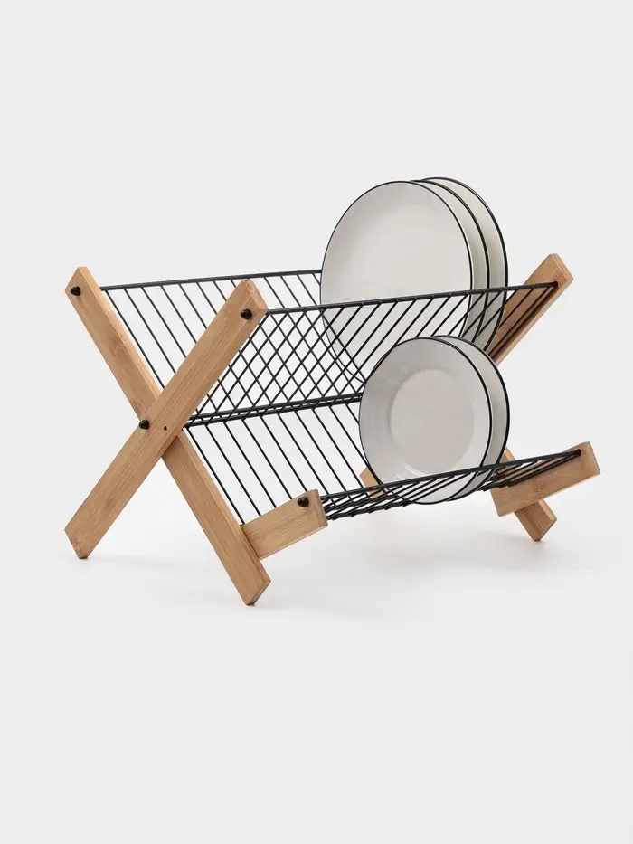 Сушилка для посуды "Meli" бамбук, металл, цвет черный