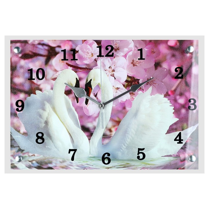Часы-картина настенные, интерьерные "Два лебедя, сиреневые цветы", бесшумные, 25 х 35 см