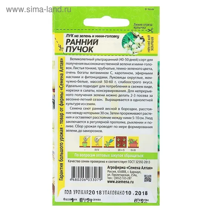 Семена Лук на зелень и мини-головку "Ранний Пучок", ц/п, ц/п, 0,3 г