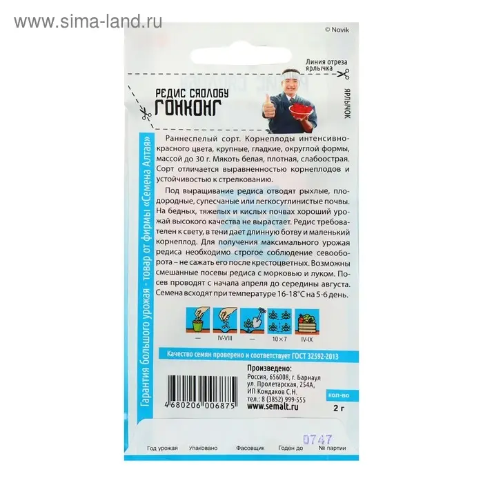Семена Редис "Гонконг", раннеспелый, ц/п, 2 г