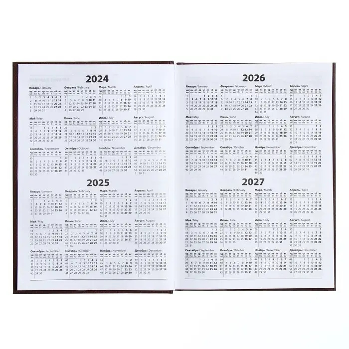 Ежедневник полудатированный на 4 года А5, 192 листа "Кожа", твёрдая обложка, шёлк, кофейно-коричневый