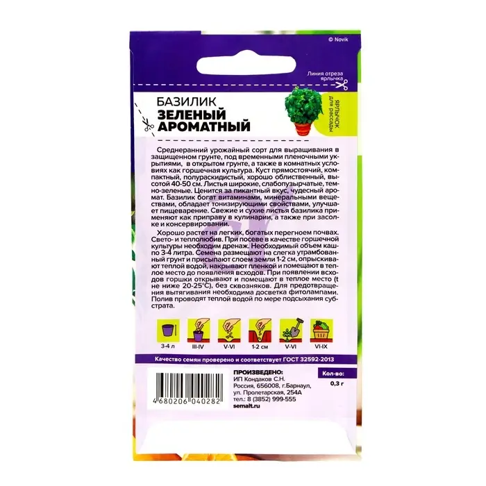 Семена Базилик "Зеленый Ароматный", ц/п, 0,3 г