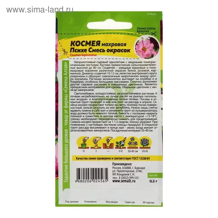 Семена цветов Космея "Психе", ц/п, махровая смесь, 0,2 г