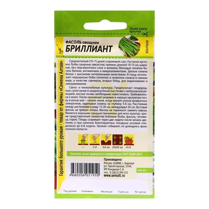 Семена Фасоль "Бриллиант", Сем. Алт, ц/п, 5 г