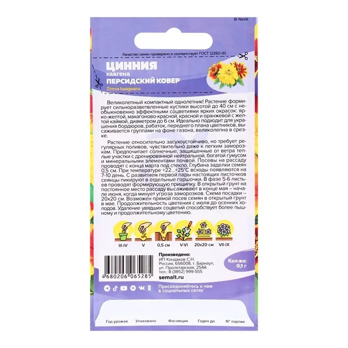 Семена цветов Цинния «Персидский Ковер», хаагена, «Семена Алтая», 0.3 г